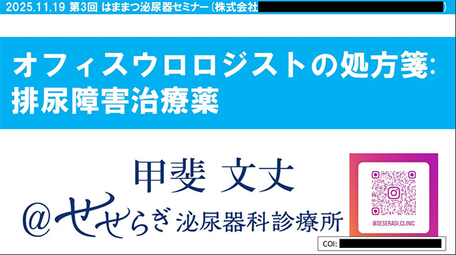 演題:「オフィスウロロジストの処方箋:排尿障害治療薬」